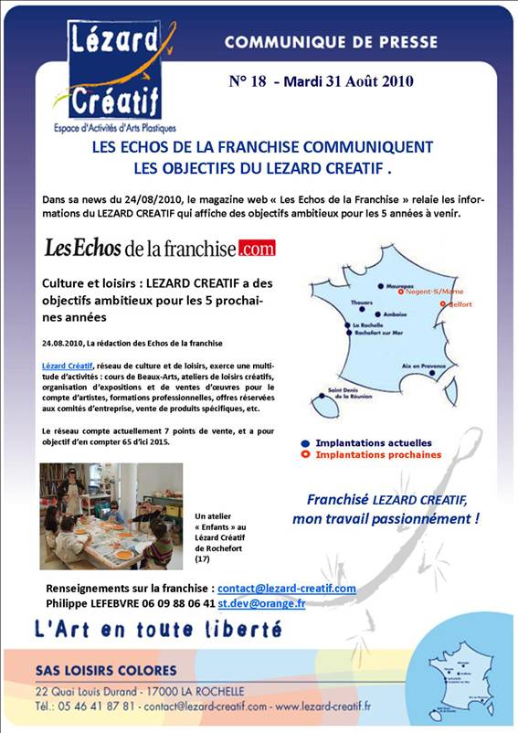 Les Echos de la franchise communiquent les objectifs du Lézard Créatif