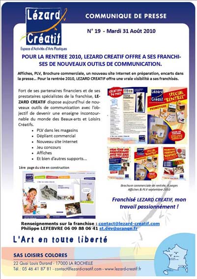 Pour la rentrée 2010, Lezard Créatif offre à ses franchisés de nouveaux outils de communication