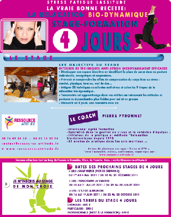 St Nizier / Grenoble ............................ du 06 au 09 mars & 01 au 04 mai 2011 L’île de la Réunion ................................ du 16 au 19 juin 2011 Pralognan la Vanoise ......................... du 18 au 21 & 25 au 28 juillet...