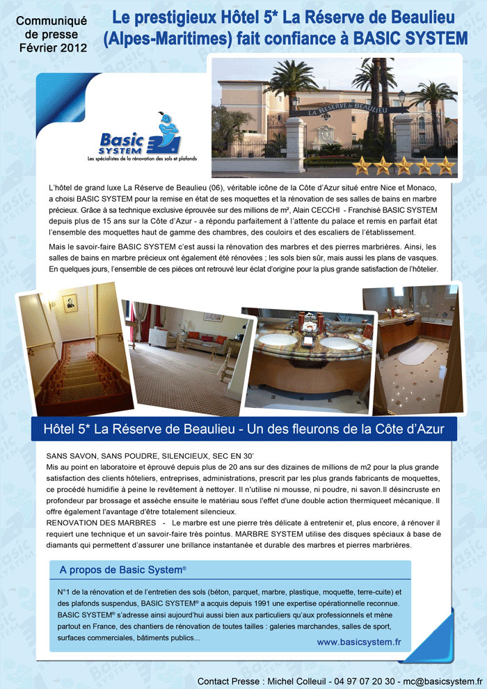 Franchise Basic System | Le Prestigieux Hôtel 5*La Réserve de Beaulieu (Alpes-Maritimes) fait confiance à Basic System