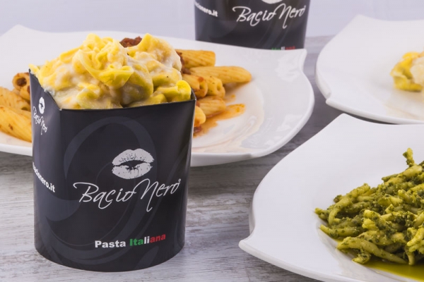 Bacio Nero redécouvre le plaisir « Espresso italien », donnant lieu à de nouveaux parfums de café, cappuccino, chocolat et milk-shakes. L'une des caractéristiques frappantes de chaque emplacement est la nouvelle façon de préparer et servir en quelques minutes les « pâtes italiennes » à la vue du client avec la possibilité de manger sur place ou à emporter.