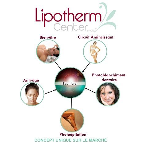 L’enseigne est pionnière dans la création d’un concept dédié exclusivement aux soins esthétiques combinant la technologie de la lumière, la radiofréquence et les ultrasons avec les dermocosmétiques. Le modèle Lipotherm CENTER est la seule et la plus complète franchise en Europe, dans le secteur des instituts de beauté, qui propose les soins dermocosmétiques les plus avancés, développés en collaboration avec les prestigieuses multinationales, leaders dans nôtre secteur : DERMEO ( photoépilation), MESOESTETIC ( dermocosmétiques ), SORISA ( radiofréquence ) et BEYOND ( photoblanchiment dentaire ). Nous abordons tous les domaines de la beauté : l’épilation permanente, l’amincissement, les soins anti-âge, le bien-être ainsi que le blanchiment dentaire.