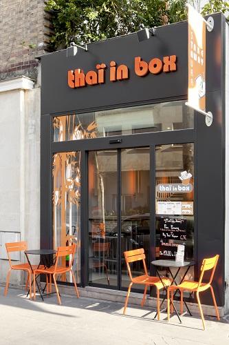 - THAI in BOX est une enseigne de restaurant rapide « premium » qui s'adresse à une clientèle d'urbains actifs. La cuisine est ouverte sur la salle par l’intermédiaire d'un grand passe plat. Les clients ont donc le loisir d'assister à la préparation de leur commandes et de découvrir que les cuisiniers sont thaïlandais. Les cup sont transmis sur le passe plat et les desserts, boissons et entrées sont en libre service dans une vitrine réfrigérée. L'offre est courte et claire pour faciliter la rapidité de service à tout moment. La carte est saisonnière et des plats du jours sont proposés quotidiennement aux clients et affichés en ardoise.